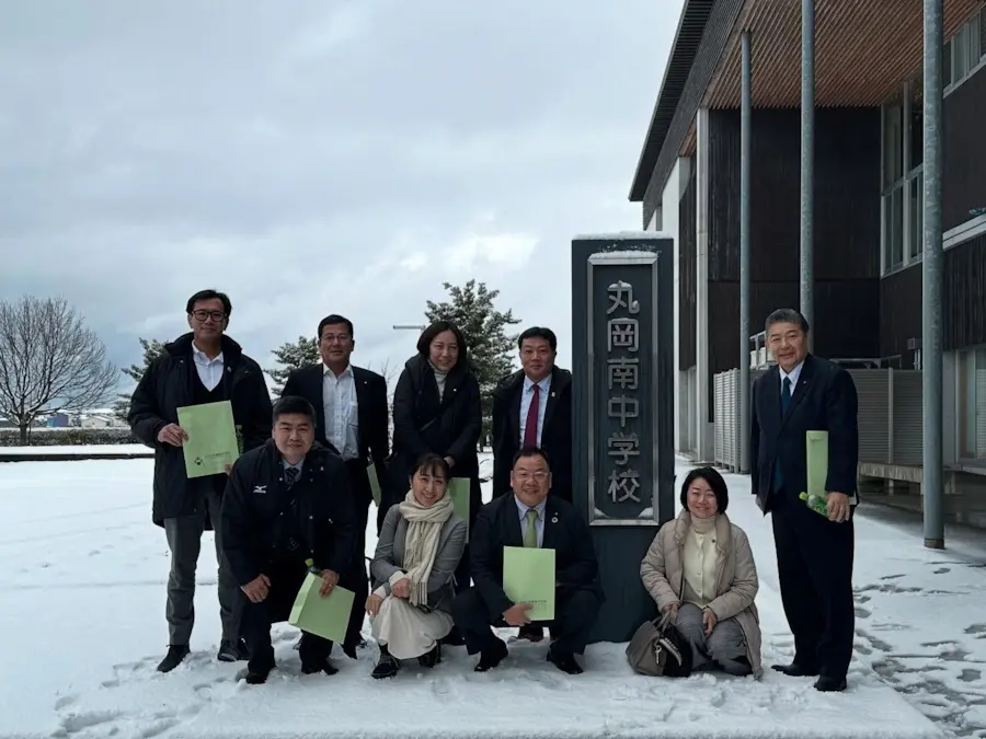 ③坂井市立丸岡南中学校にて、センター方式など独自の教育・環境整備などのご説明と意見交換。
